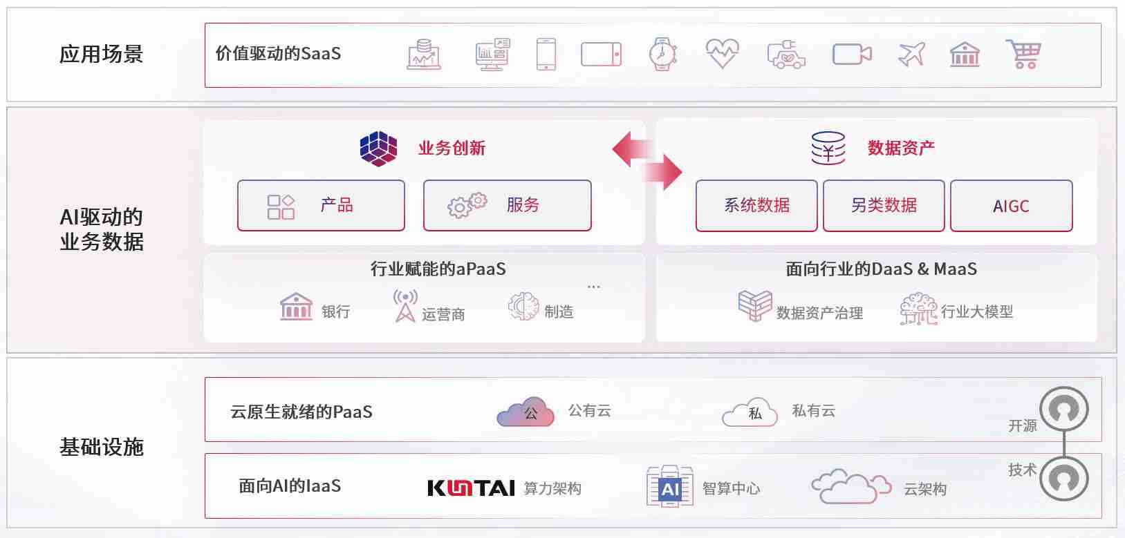 数字时代,,,围绕企业数字化转型的关键要素,,,www.k8k8.com数码开创性的提出数云融合战略和技术体系框架,,,,着力在云原生、、、数字原生、、、、AI原生和信创产业上架构产品和服务能力,,,,为处在不同数字化转型阶段的快消零售、、、、汽车、、、、金融、、、、医疗、、、政企、、教育、、、运营商等行业客户提供泛在的敏捷IT能力和融合的数据驱动能力,,,构建跨界融合创新的数字业务场景和新业务模式,,,,助力企业级客户建立面向未来的核心能力和竞争优势,,,,全面推动社会的数字化、、、、智能化转型升级。。。。