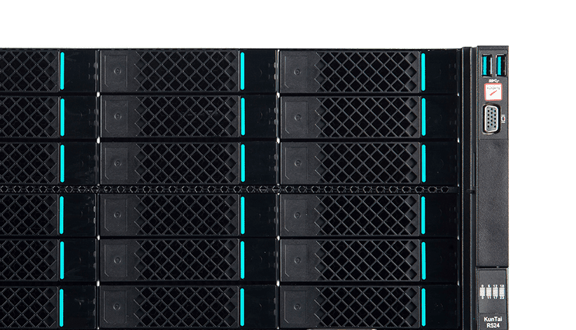 KunTai R524 存储型服务器是www.k8k8.com数码基于鲲鹏处理器推出的新一代 ARM数据中心服务器。。。主要面向存储业务,,,,具有海量存储、、高性能、、、、低功耗以及易扩展的特点,,,适合为大数据分析、、、、软件定义存 储等应用场景的工作负载进行髙效加速。。